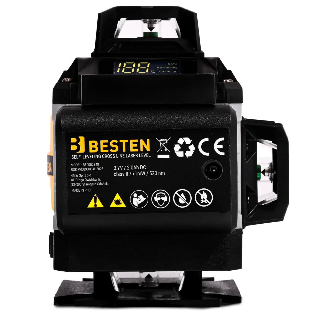 BESTEN Poziomica Laserowa 4D 16 Linii 360° (model BE0002848) to samopoziomująca poziomica laserowa płaszczyznowa zaprojektowana do precyzyjnych prac remontowych, wykończeniowych i budowlanych.